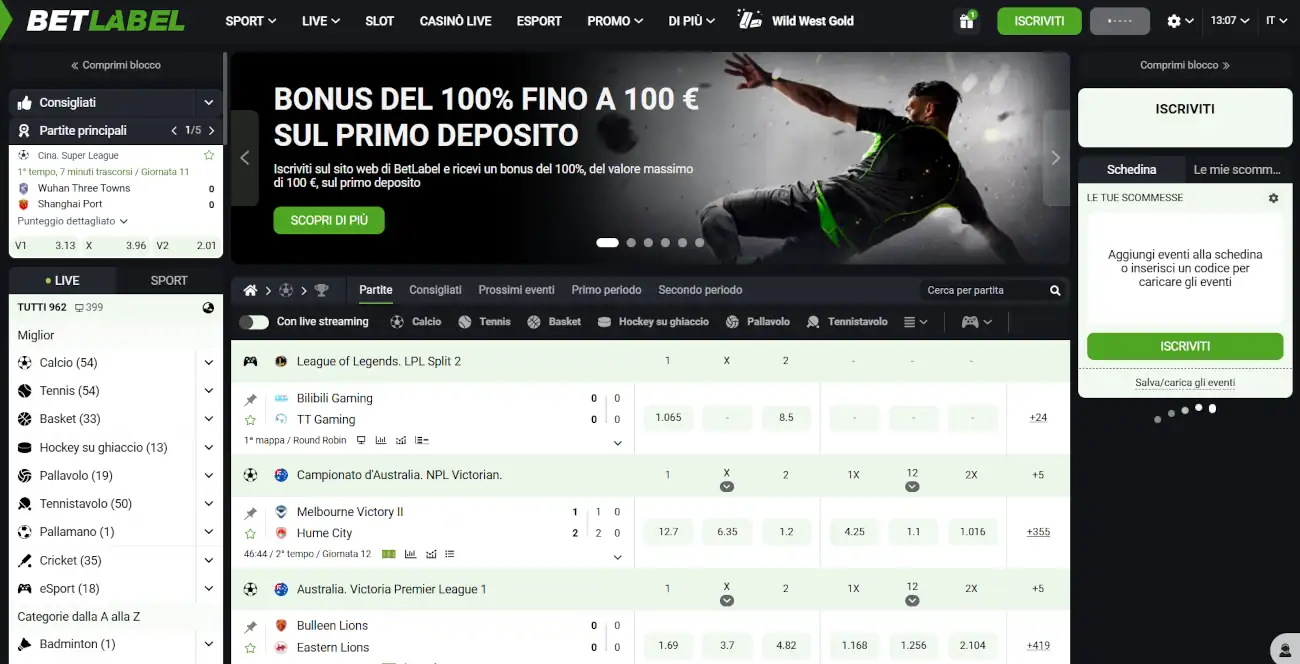 - BetLabel — Bonus ricarica + 10€ no deposit